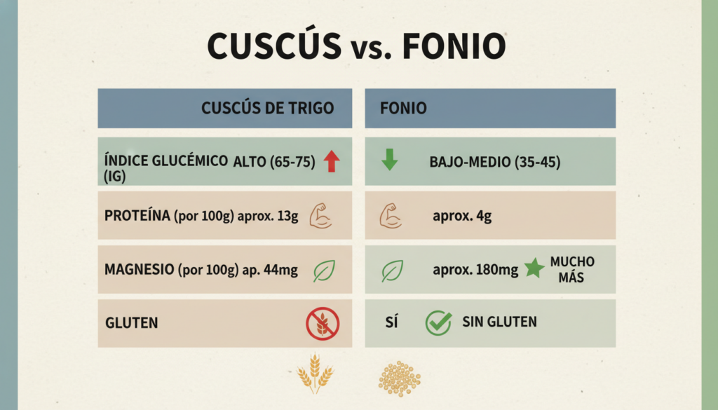 | Característica | Cuscús de Trigo | Cuscús de Fonio | Ventaja |