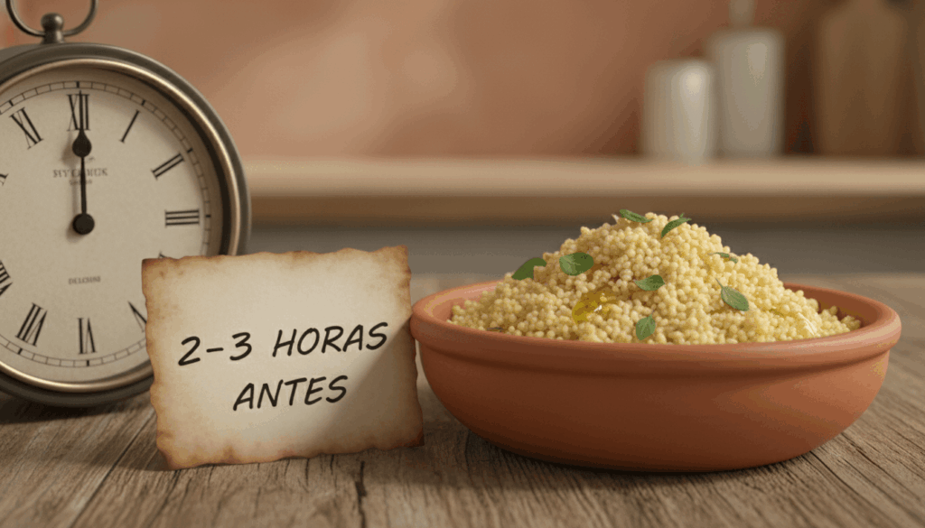 Recomendamos 200-250g de fonio cocido (equivalente a ~65-80g de carbohidratos) consumidos 2.5-3 horas antes de la salida. Combina con una fuente proteica ligera (claras de huevo) y una fruta (plátano). Esto aporta ~100g carbohidratos totales, suficiente para cargar glucógeno sin sobrecarga digestiva.
