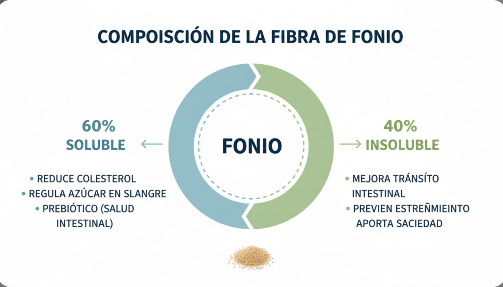 | Tipo de Fibra | Cantidad en Fonio (100g cocido) | Función Digestiva |