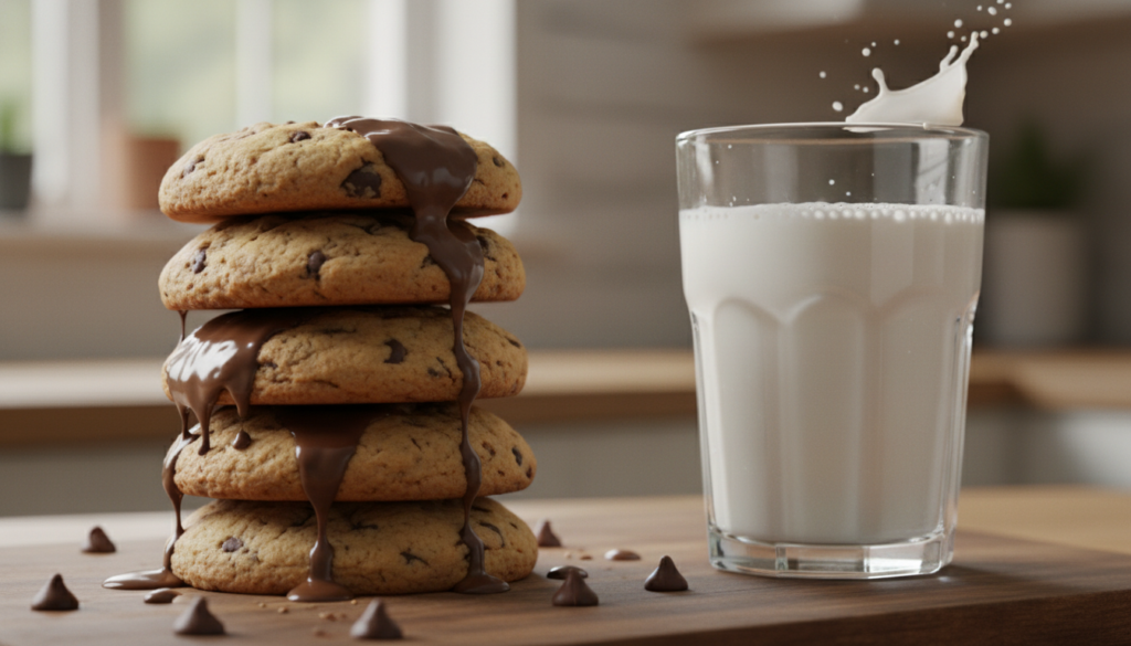- Decora: Presiona 2-3 chips de chocolate extra en la superficie de cada galleta (visual atractivo para niños).