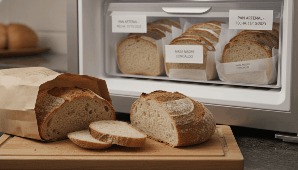 Temperatura ambiente: 3-4 días en bolsa de papel o paño. Refrigerador: NO (se endurece). Congelador: hasta 3 meses en rebanadas. Siempre descongela en tostadora para mejor textura.
